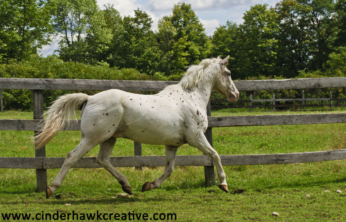 The weekend of July 6th, my mother was meeting us in Plattsburgh, NY to help us with our second year photographing the Lake Champlain Appaloosa Club’s regional horse show. We were excited because she was also bringing her Appy gelding Joey to show there. When she arrived, my father called and informed us that Rusty had been struck and killed by a vehicle a half mile away after breaking through the wooden fence. Needless to say, it was a heavy blow, after having received such good news on the surgery. On Easter I lost my bird Cade to a blood clot. I had raised her since she was 2 months old and she passed away at the young age of 9. I was devastated, as she had been, like Rusty, my best friend of many years. To lose Rusty while the loss of Cade was still so fresh in my mind made me angry, but I couldn’t deny being thankful I had taken so many photos and videos of both. We later learned that following surgeries, anesthesia can still affect the brain for up to 90 days. It was the vet’s strong belief that Rusty was, essentially, not in the right mind when he was startled, probably by nearby fireworks, and broke through the fence. It was the only explanation that seemed to fit considering how absolutely bombproof this animal had always been.