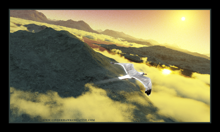 This landscape was generated in Terragen 3 and then supplemented with Photoshop CS5 for some extra effects and the bird. Share this:Tweet Email a link to a friend (Opens in new window) Email Print (Opens in new window) Print MoreShare on TumblrPocket Share on Reddit (Opens in new window) Reddit Like this:Like Loading...